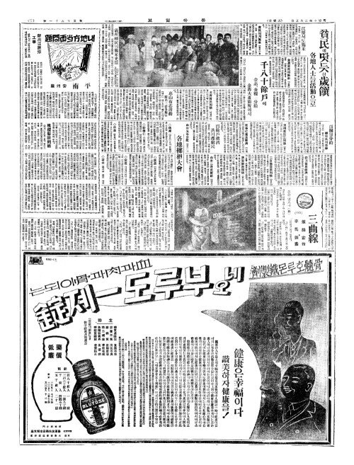- 本月十六日付(본월십륙일부)의 本紙(본지)에 揭載(게재)한 萬病水錠廣吿中(만병수정광고중)