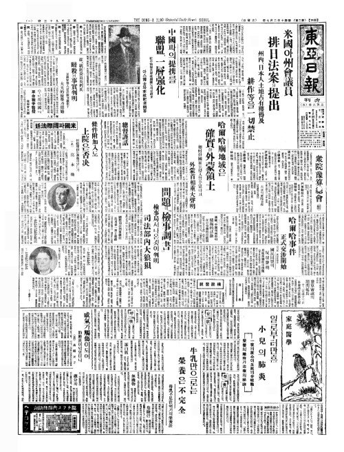 - 米國(미국)아州會議員(주회의원) 排日法案(배일법안)을提出(제출)