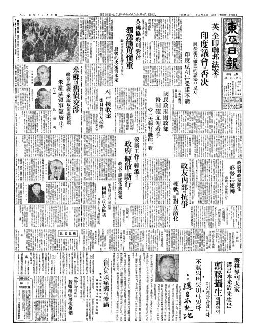 - 英(영)、全印聯邦法案(전인련방법안)을 印度議會(인도의회)서否决(부결)