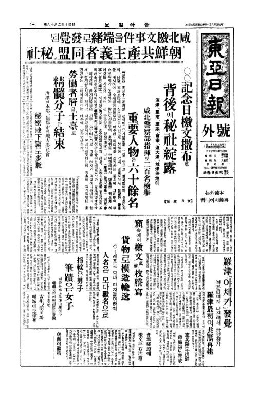- 關係者東京(관계자동경)에集合(집합) 三月中(삼월중)에創立(창입)