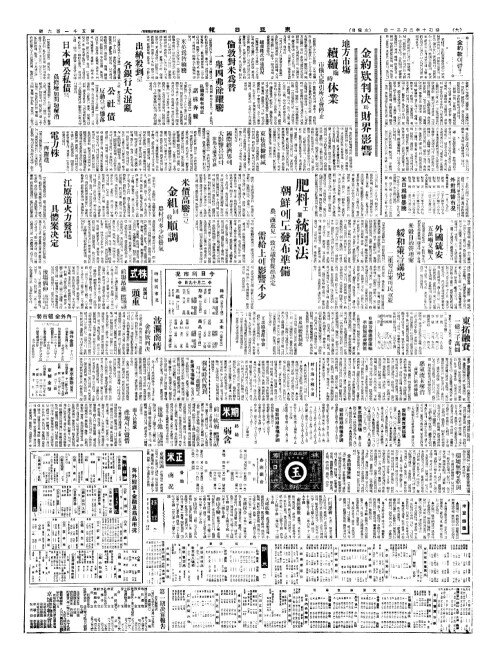 - 肥料配給(비요배급)의合理化(합리화) 商業組合設置(상업조합설치)를可决(가결)