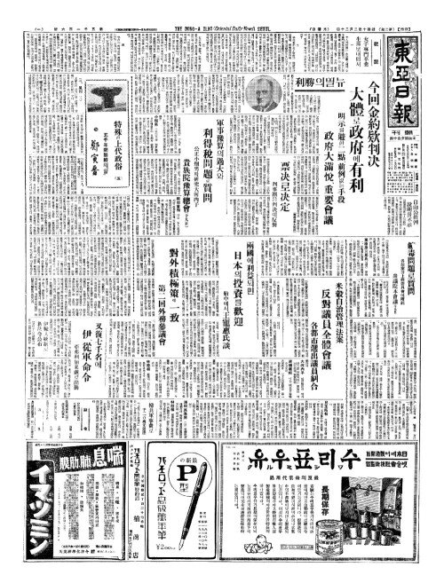 - 利得稅問題(리득세문제)로又復(우복) 政府(정부)와政友對立(정우대립)