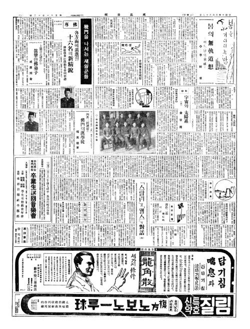 - 校門(교문)을 나서는 새일꾼들 佛專(불전)