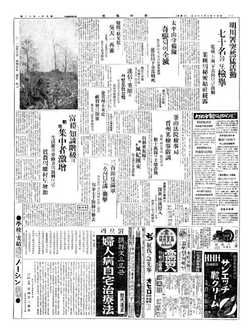 - 明川署突然猛活動(명천서돌연맹활동) 七十名(칠십명)을 또檢擧(검거)