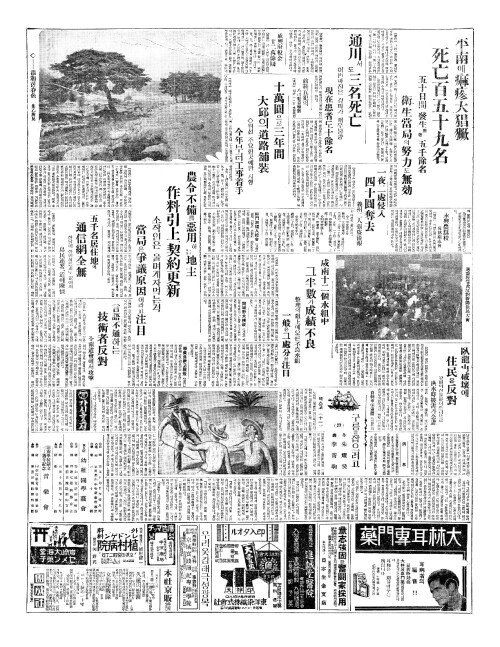 - 平南(평남)에麻疹大猖獗(마진대창궐) 死亡百五十九名(사망백오십구명)