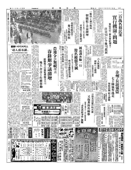 - 全南災民中(전남재민중) 九十名移住(구십명이주)