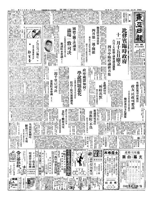- 比律賓臨時政府(비률빈임시정부) 十一月十五日樹立(십일월십오일수입)