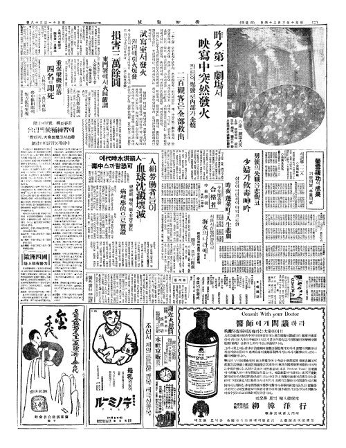 - 昨夕(작석)、第一劇塲(제일극장)서 映寫中突然發火(영사중돌연발화)