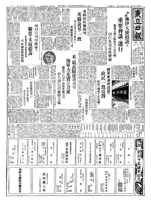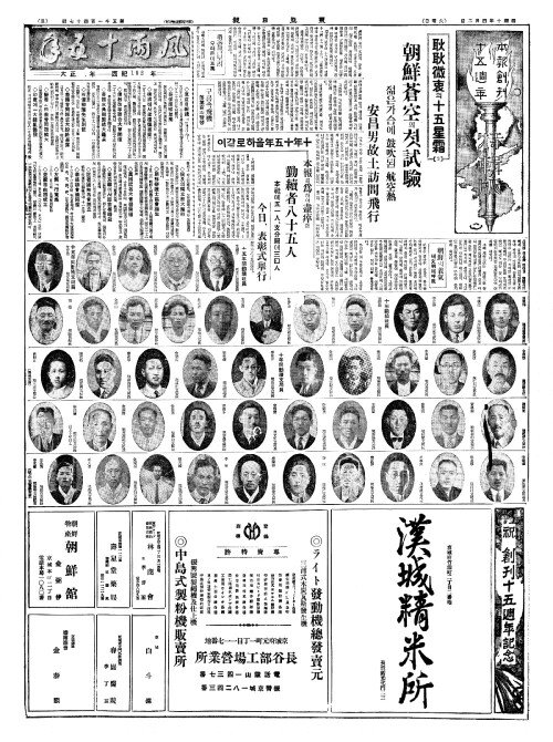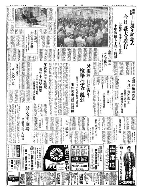 - 本報創刋(본보창천) 十五週年記念(십오주연기염)