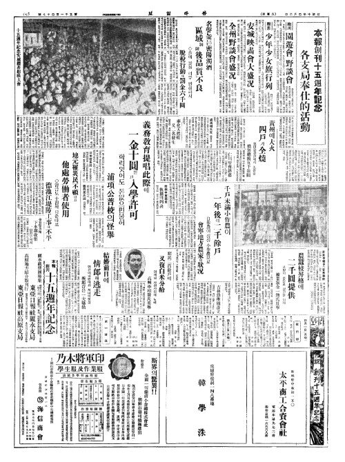 - 本報創刊十五週年記念(본보창간십오주연기염) 各支局奉仕的活動(각지국봉사적활동)
