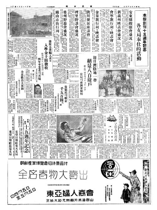 - 本報創刊(본보창간) 十五週年記念(십오주연기념) 各支局奉仕的活動(각지국봉사적활동)