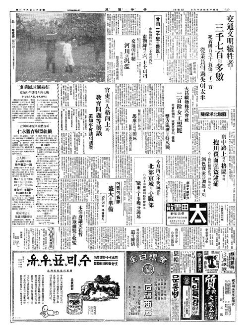 - 交通文明犧牲者(교통문명희생자)= 三千七百(삼천칠백)의多數(다삭)