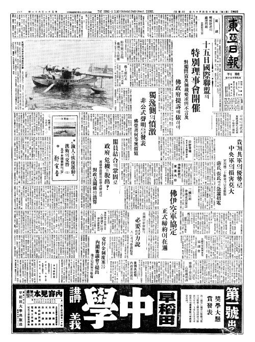 - 十五日國際聯盟(십오일국제련맹)의 特別理事會開催(특별리사회개최)