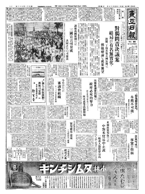 - 聯盟緊急理事會(연맹긴급리사회) 午後四時(오후사시)지나散會(산회)