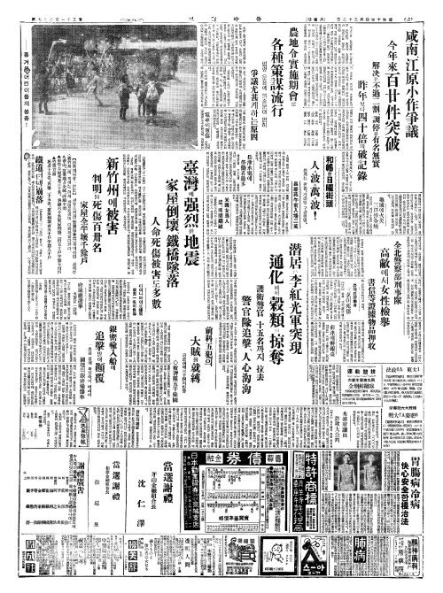 - 臺灣(대만)에强烈(강렬)한地震(지진) 家屋倒壞(가옥도괴)、鐵橋墜落(철교추낙)