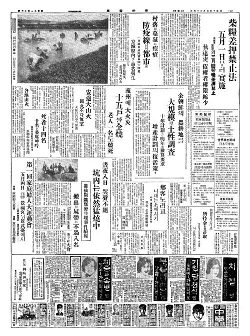 - 柴糧差押禁止法(시량차압금지법) 五月一日(오월일일)부터實施(실시)