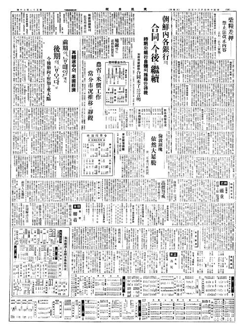 - 朝鮮內各銀行(조선내각은행)의 合同(합동)은今後(금후)도繼續(계속)