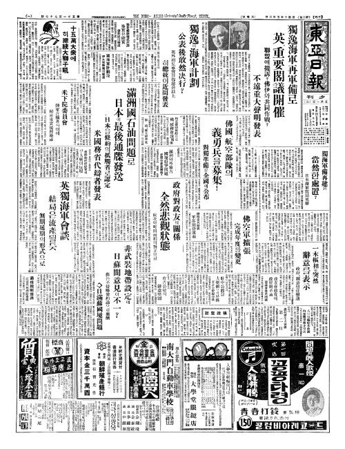- 獨逸海軍再軍備(독일해군재군비)로 英(영)、重要閣議開催(중요각의개최)