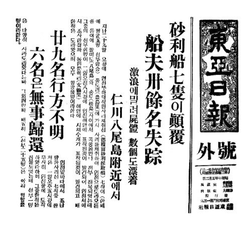 - 京南鐵道(경남철도)의 渡船(도선)도不通(부통)