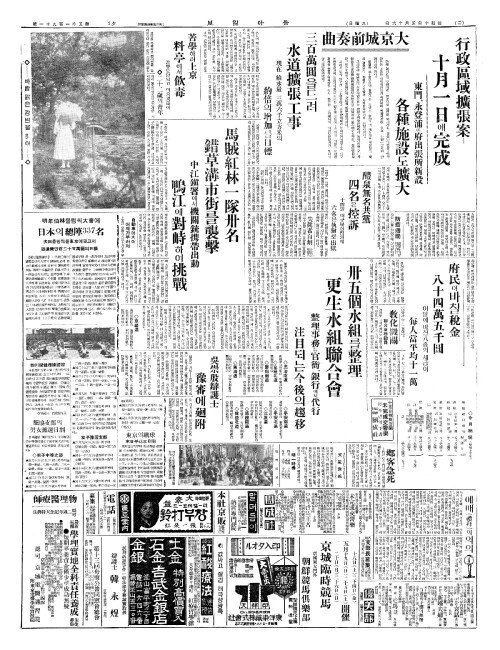 - 行政區域擴張案(행정구역확장안) 十月一日(십월일일)에完成(완성)
