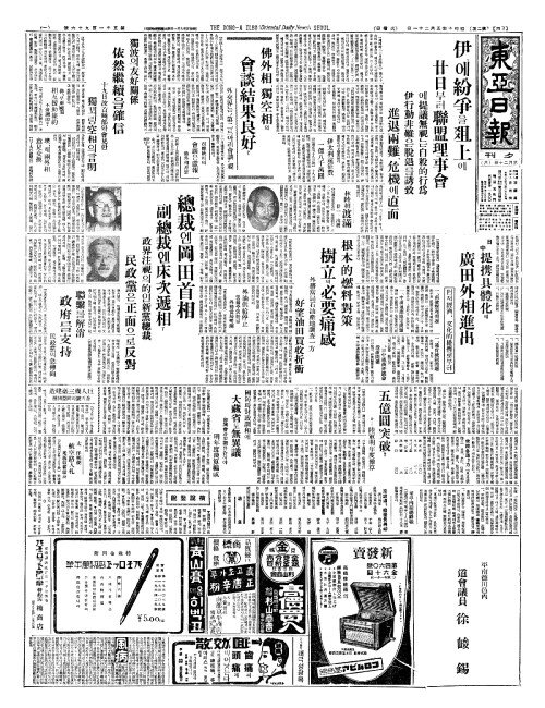 - 日中提携具體化(일중제휴구체화)에 廣田外相進出(광전외상진출)