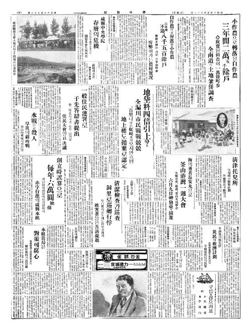 - 自作農(자작농)으로昇進(승진)한小作農(소작농) 三年間不過八千五百餘戶(삼년간부과팔천오백여호)