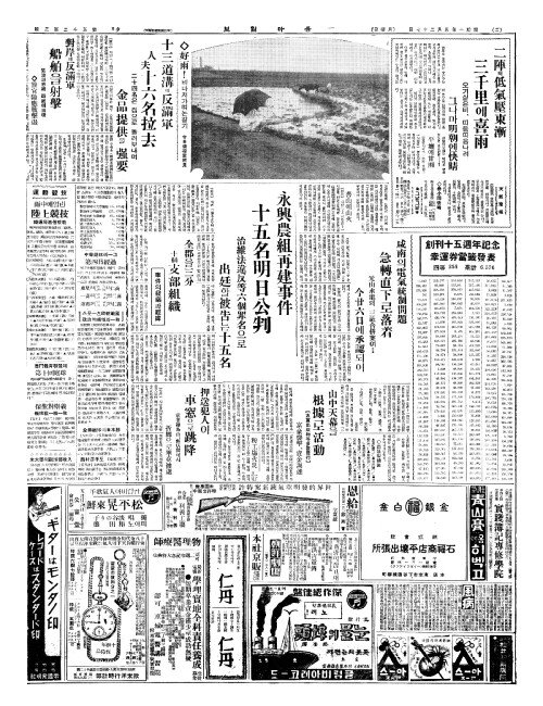 - 永興農組再建事件(영흥농조재건사건) 十五名明日公判(십오명명일공판)