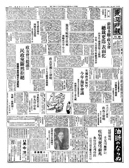 - 政友單獨(정우단독)으로聲明(성명) 二十九日總務會開催(이십구일총무회개최)