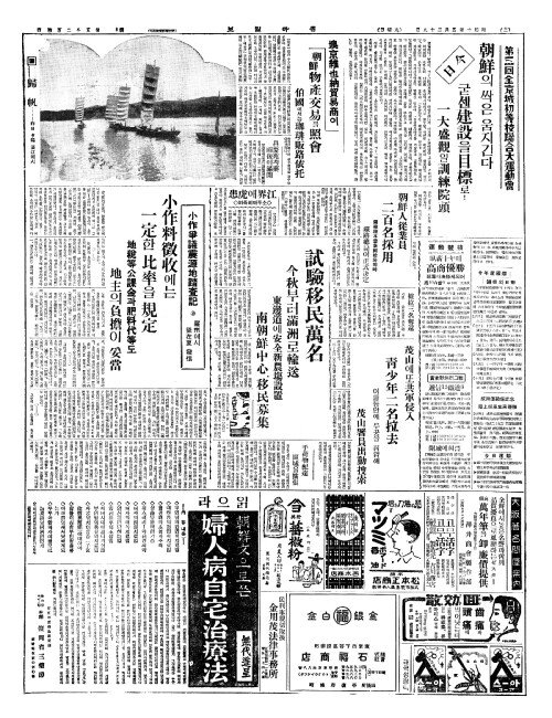 - 試驗移民萬名(시험이민만명) 今秋(금추)부터滿洲(만주)로輸送(수송)
