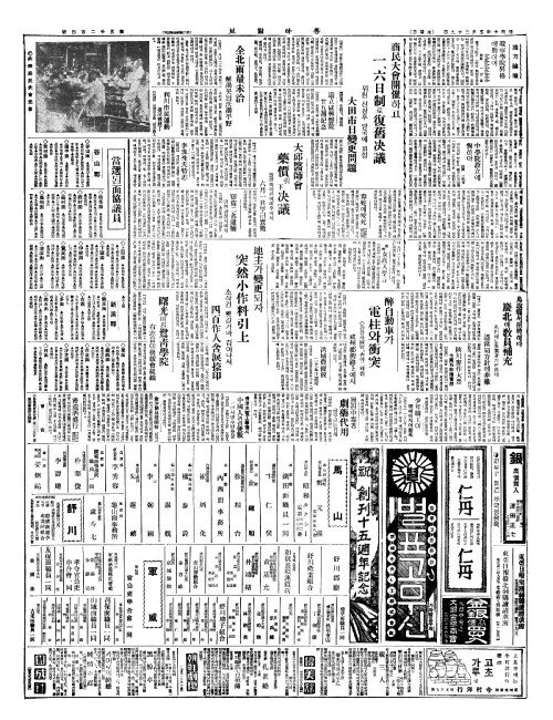 - 商民大會開催(상민대회개최)하고 一(일)、六日制(육일제)로復舊决議(복구결의)