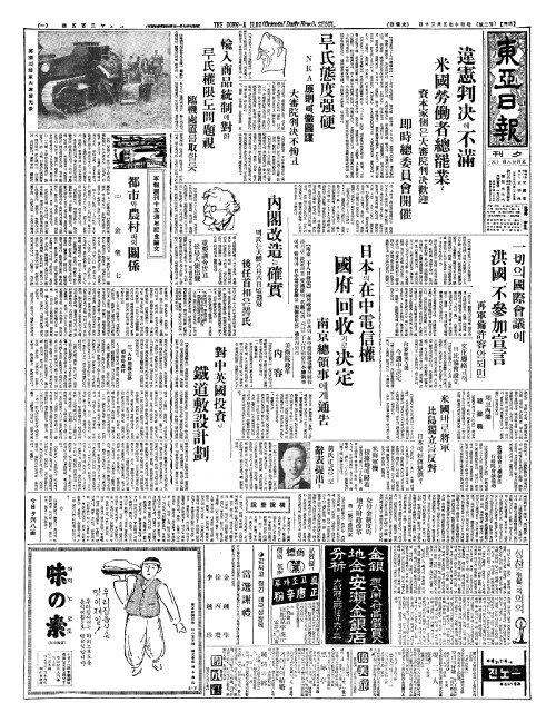 - 日本(일본)의在中電信權(재중전신권) 國府(국부)、回收(회수)키로决定(결정)