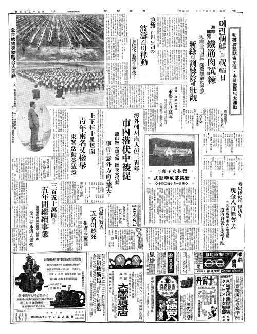 - "어린朝鮮(조선)"의祝福日(축복일) 萬餘健兒鐵筋肉試練(만여건아철근육시련)