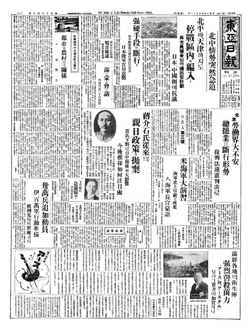 - 王克敏氏(왕극민씨) 急遽歸平(급거귀평) 河北情勢急迫(하북정세급박)