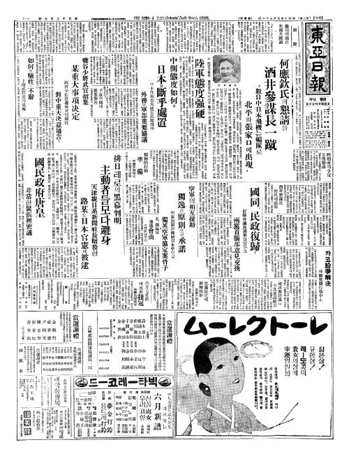 - 何應欽氏(하응흠씨)의懇請(간청)을 酒井參謀長一蹴(주정삼모장일축)