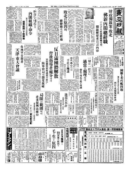 - 各地軍首腦者(각지군수뇌자) 天津(천진)서重大會議(중대회의)