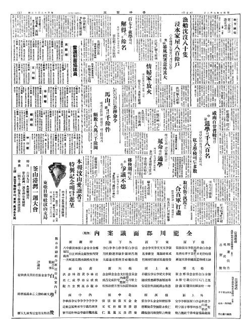 - 漁船沈沒八十隻(어선침몰팔십척) 浸水家屋八百餘戶(침수가옥팔백여호)