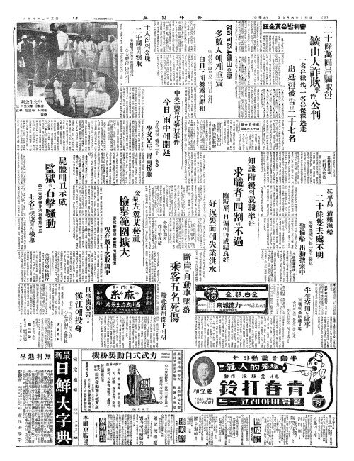 - 二十餘萬圓(이십여만원)을騙取(편취)한 鑛山大詐欺事件公判(광산대사기사건공판)