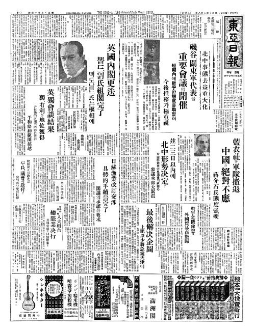 - 漢口中國側當局(한구중국측당국) 言論取締奔走(언논취체분주)