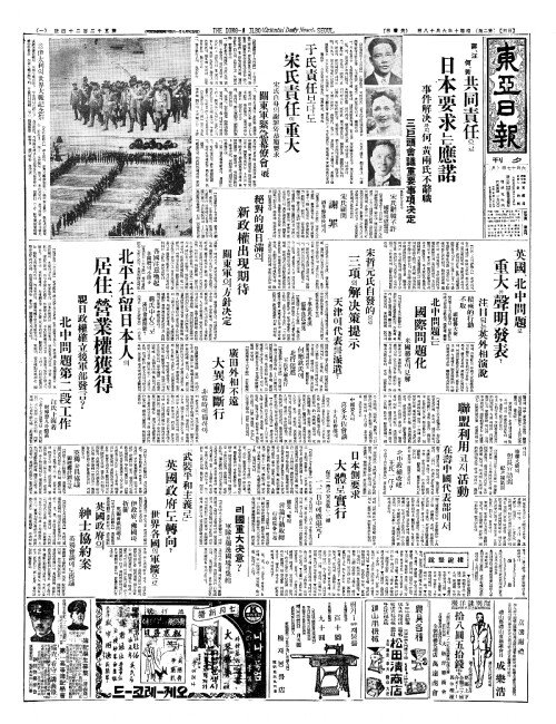 - 蔣(장)、汪(왕) 何(하)、黃共同責任(황공동책임)으로 日本要求(일본요구)는應諾(응락)