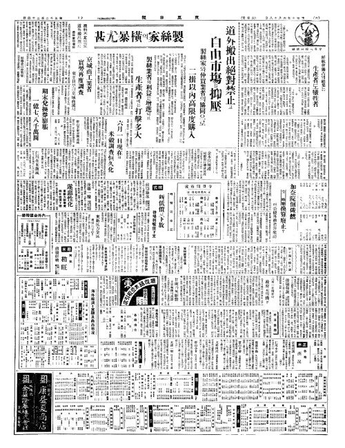 - 原料不足(원료부족)으로 道外搬出禁止(도외반출금지) 農林當局者談(농임당국자담)