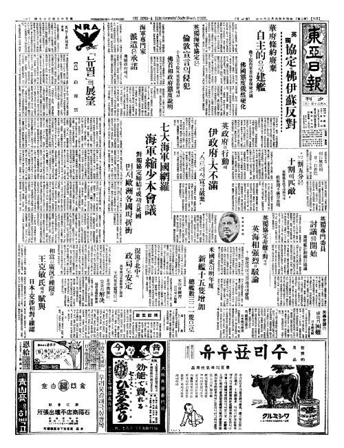 - 英獨協定非難(영독협정비난)에對(대)하야 英海相强烈(영해상강렬)히駁論(박론)