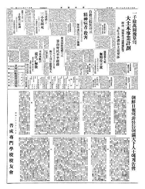 - 一千餘萬圓豫算(일천여만원예산)의 大土木事業計劃(대토목사업계획)