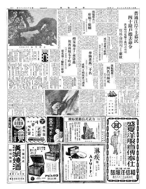 - 間島一帶(간도일대)에도大雨(대우) 廿日間(입일간)이나繼續(계속)