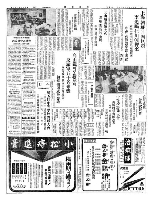 - 上海(상해)、朝鮮(조선)○○團巨頭(단거두) 李光福(리광복)、仁川(인천)에押來(압내)