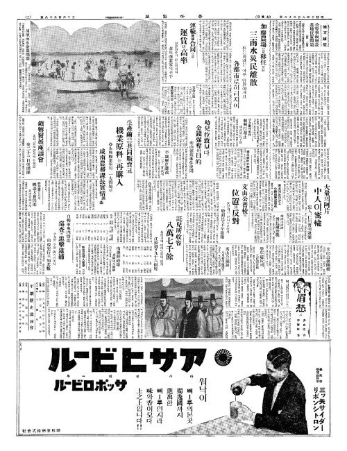 - 渡船全部中止(도선전부중지) 羅南附近(라남부근)의水害(수해)
