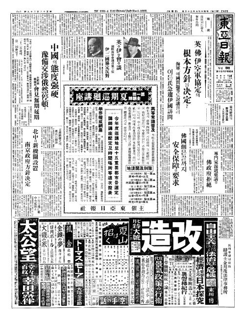 - 英(영)、佛(불)、伊空軍協定(이공군협정)의 根本方針(근본방침)을决定(결정)?