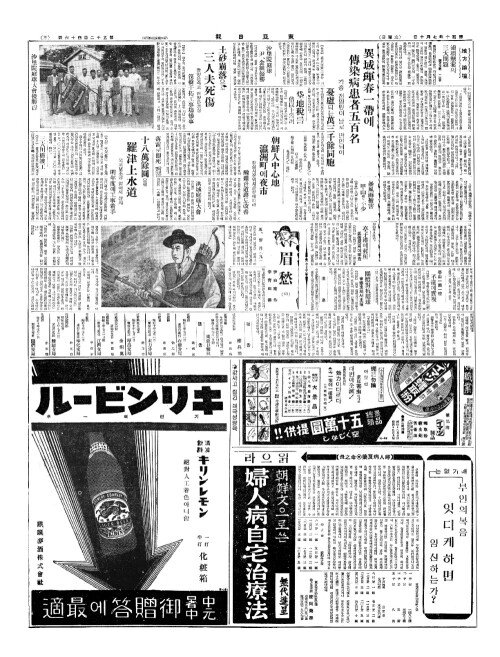 - 異域琿春一帶(이역혼춘일대)에 傳染病患者五百名(전염병환자오백명)