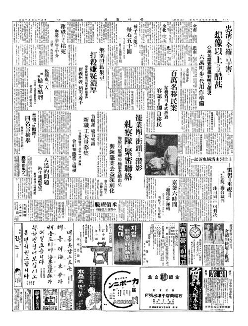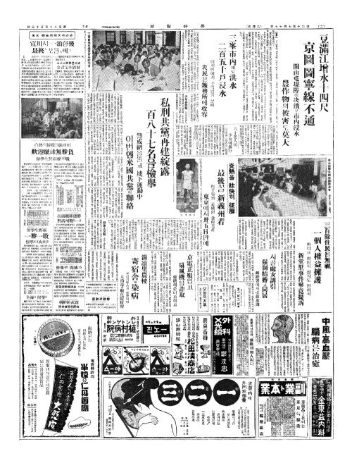 - 三峯市內(삼봉시내)에도洪水(홍수) 二百五十戶浸水(이백오십호침수)