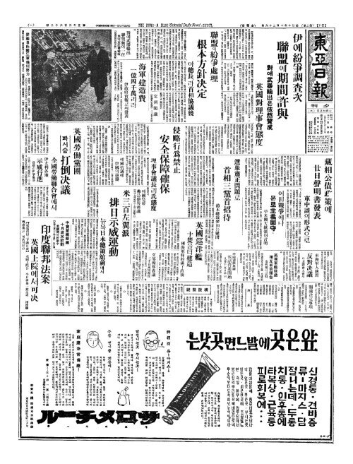 - 印度聯邦法案(인도련방법안) 英國上院(영국상원)에서可决(가결)