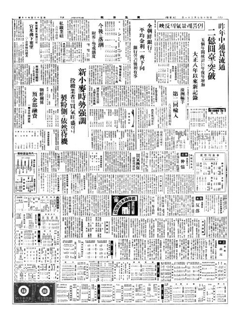 - 인풀레景氣(경기)의反映(반영) 昨年中通貨流通(작년중통화류통) 二億圓臺(이억원대)를突破(돌파)